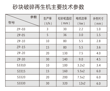 行砂块的破碎摩擦,破碎效率高。同时,本机增加了栅格和筛分功能,