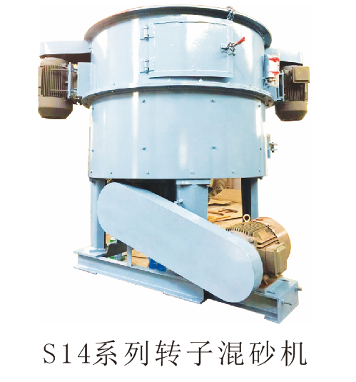 它的主要工作原理是:采用低速转动的刮板推动物 料在机盆内形成环流运动,高速转动的转子叶片既对型砂施以冲击力,又与刮板配合对型砂施以剪切力,使 砂料之间发生冲击和激烈的摩擦,从而达到混砂速度快,型砂质量好和能耗低的目的。