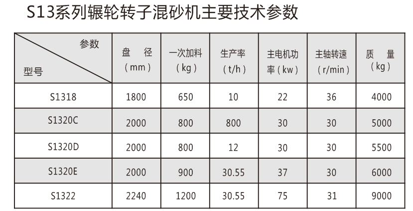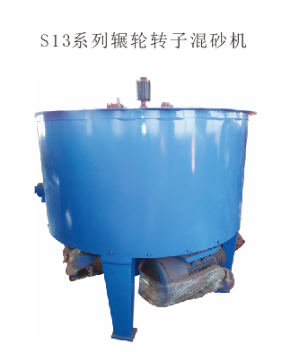 该系列混砂机工作机构由一个辗轮、一个混砂转子和三个刮板组 成。既保留了辗轮的辗力和搓擦作用,使型砂具有较高的强度,又增 加了混砂转子强烈的搅拌作用,使型砂强度上升快,混砂周期短,生 产率高,而且砂质松散,透气性好。本品还采用了弹簧加压和气压加 水等结构,对提高型砂质量和提高生产效率起了重要作用。